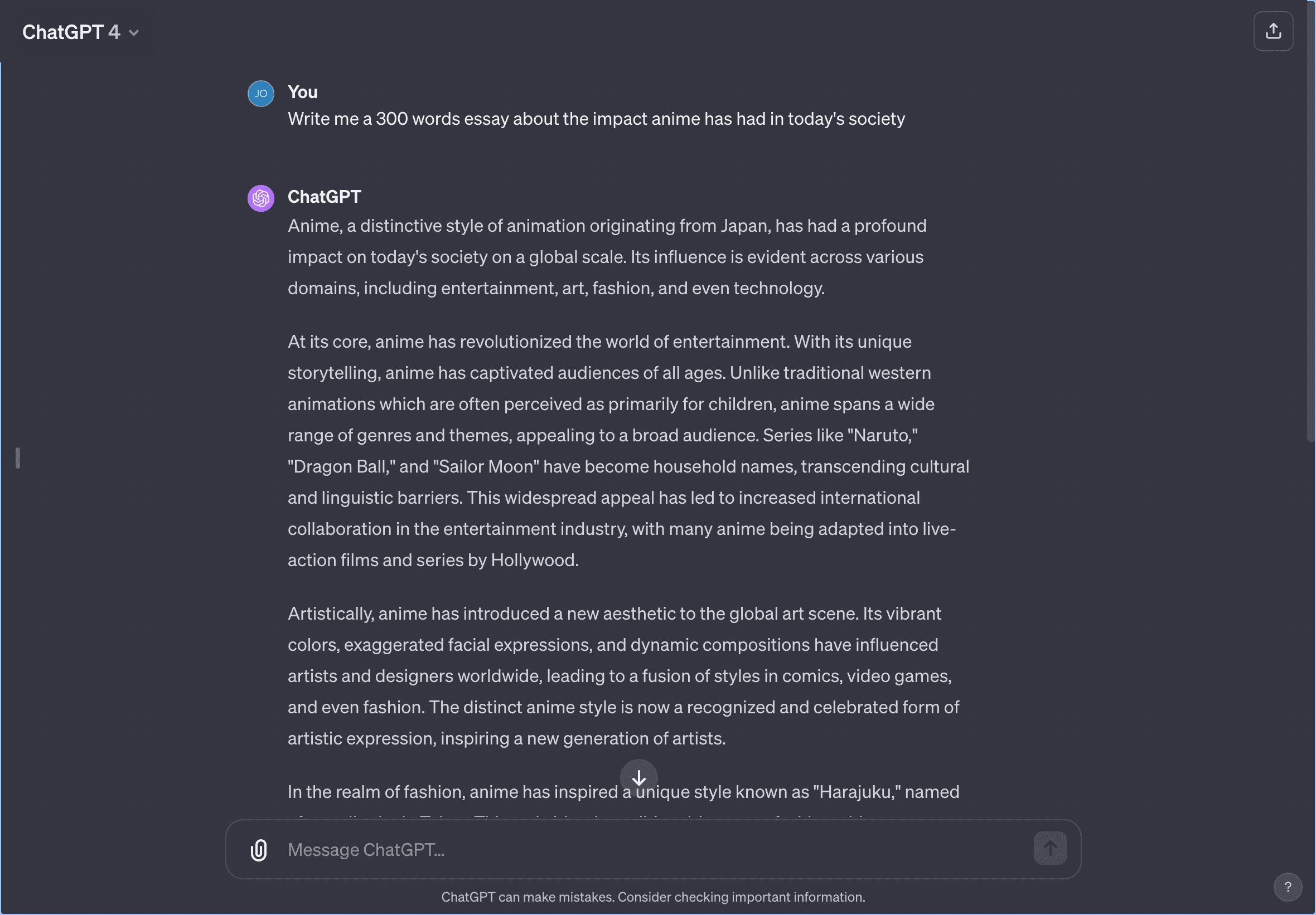 Firstly, let's come up with a text written by ChatGPT. Here's the prompt that we will be using for the experiment.
