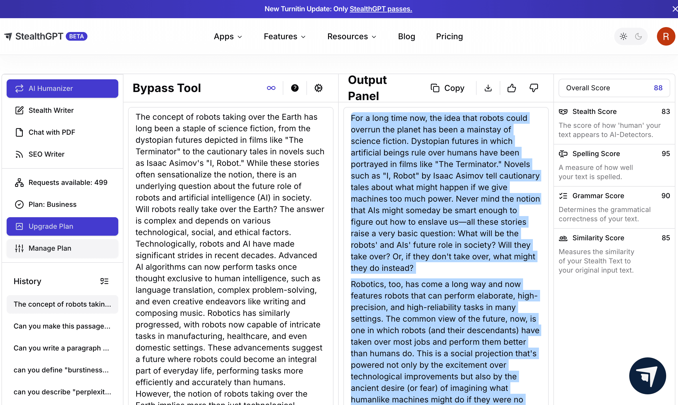 First, let's humanize ChatGPT's text with StealthGPT’s AI Humanizer: