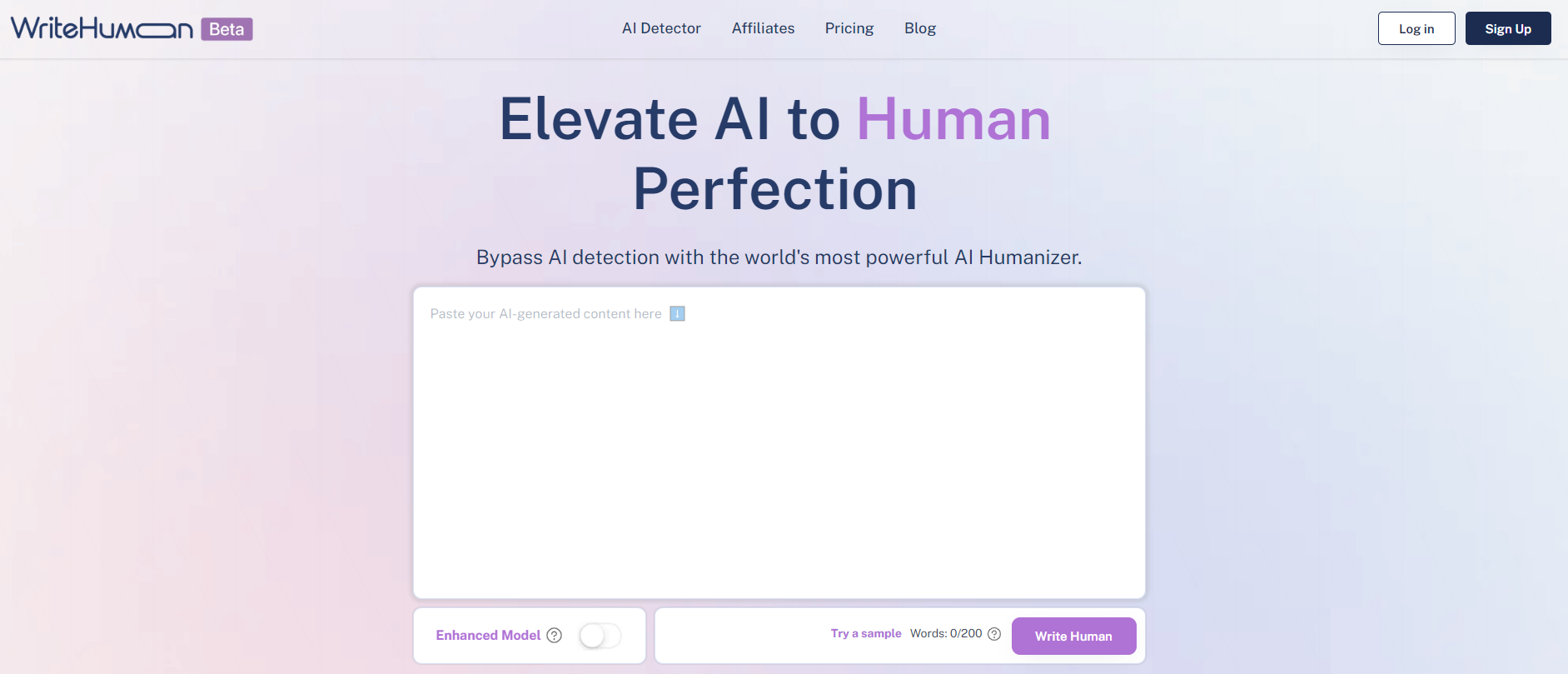 WriteHuman is touted as a sophisticated AI detection evasion tool, seamlessly compatible with plagiarism checkers such as Turnitin and GPTZero, among others. Its main role is to enhance users' online privacy and anonymity by optimizing their text to dodge AI tracking and sidestep AI detection mechanisms. This capability renders it an essential asset for individuals aiming to produce content that convincingly resembles human authorship, thereby eluding the AI algorithms deployed across numerous online platforms and services.