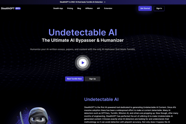 AIBypass is a service designed to help users modify their written content to evade detection by AI plagiarism tools such as Turnitin. It leverages StealthGPT's proprietary "Undetectable AI" engines to rephrase and rewrite text in a manner that appears human-written, aiming to bypass various AI detectors including GPTZero, Originality, and Copyleaks, with a special focus on Turnitin. AI Bypass markets itself as offering a unique solution that stands out from other undetectable AI tools by providing superior rephrasing capabilities.
