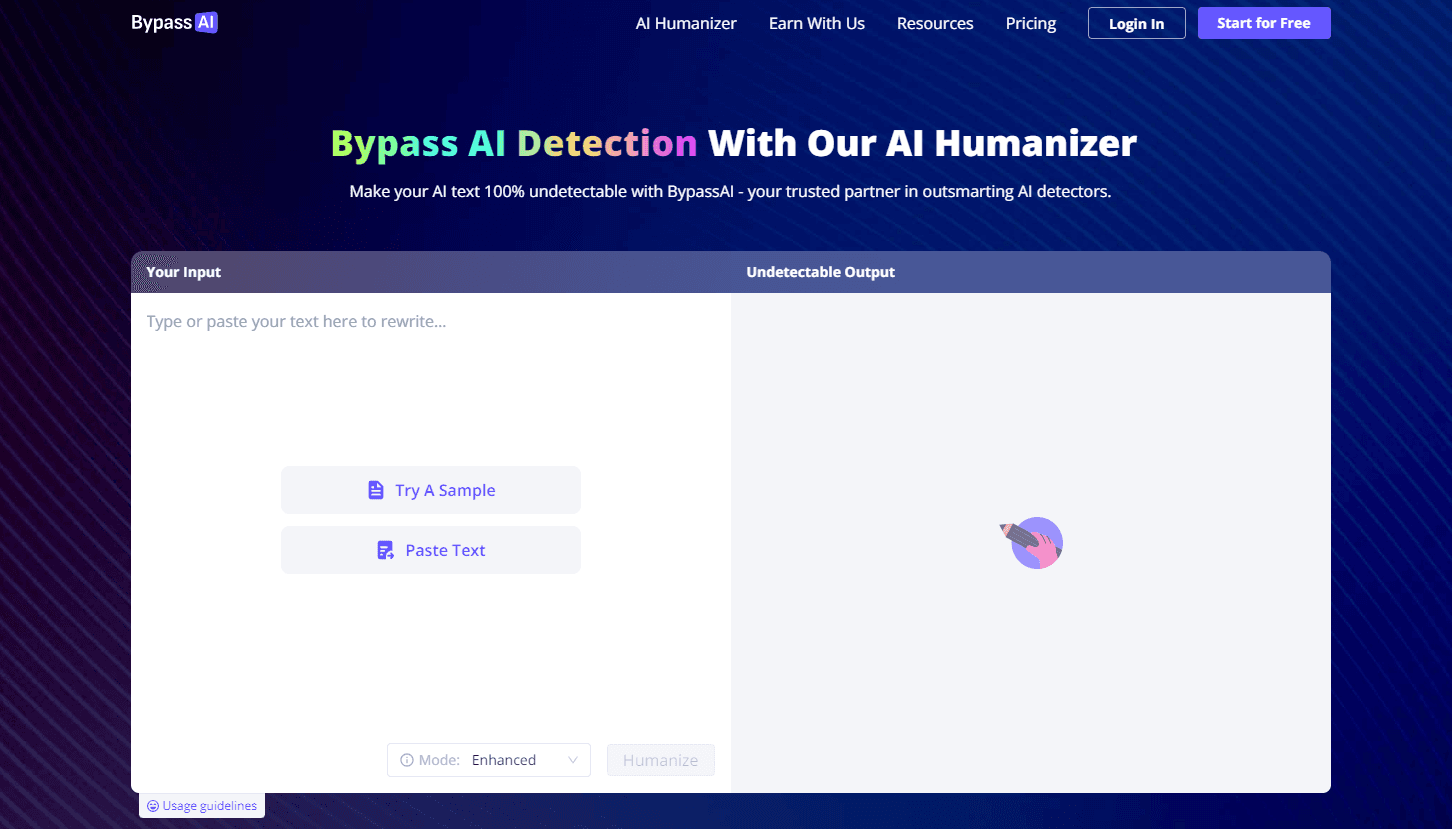 Offers resources to aid AI-generated content in bypassing detection by plagiarism checkers or AI content detectors.