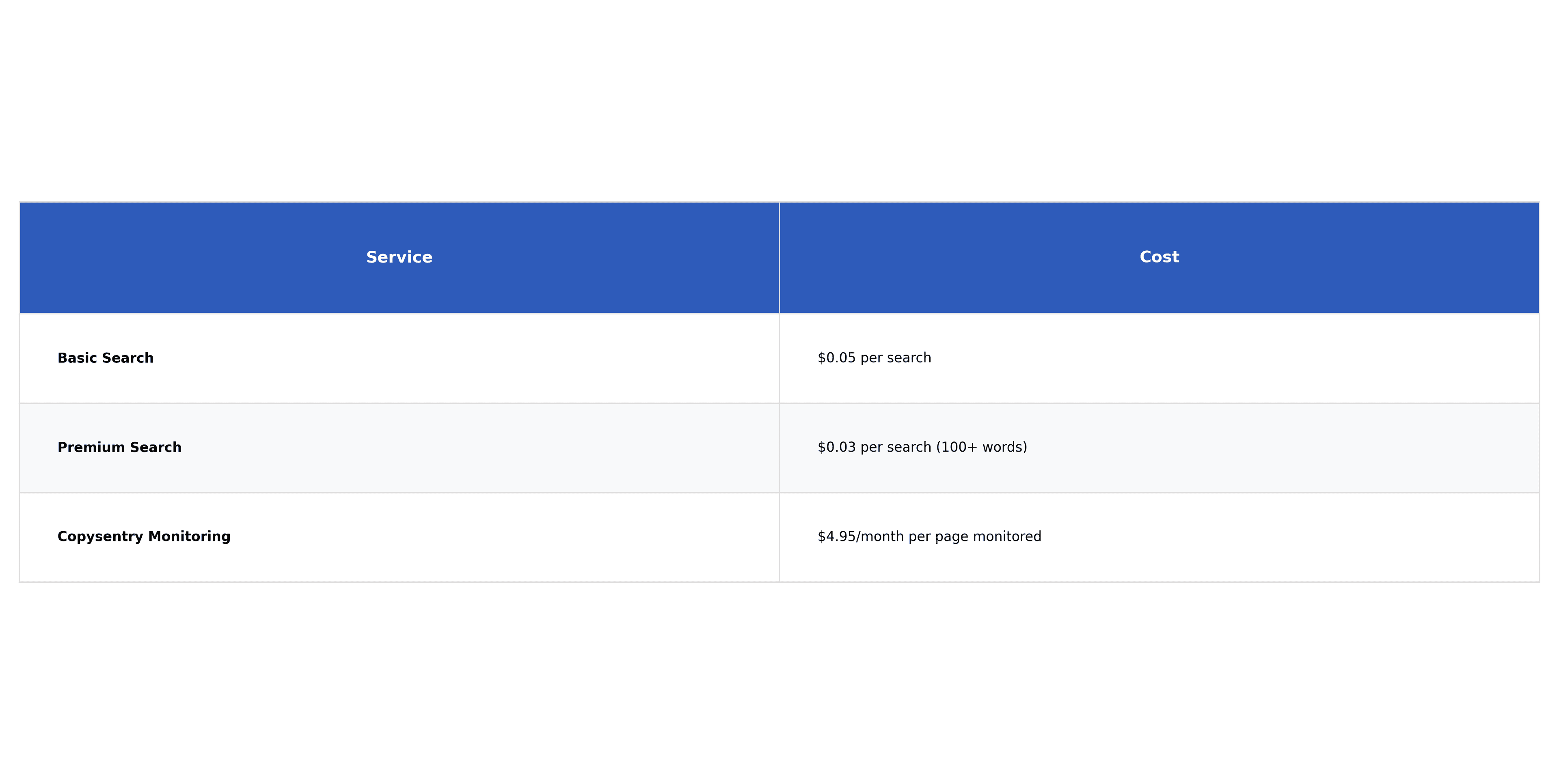 Copyscape uses a credit-based system that charges only for actual searches, making it cost-effective for users with variable checking needs.
