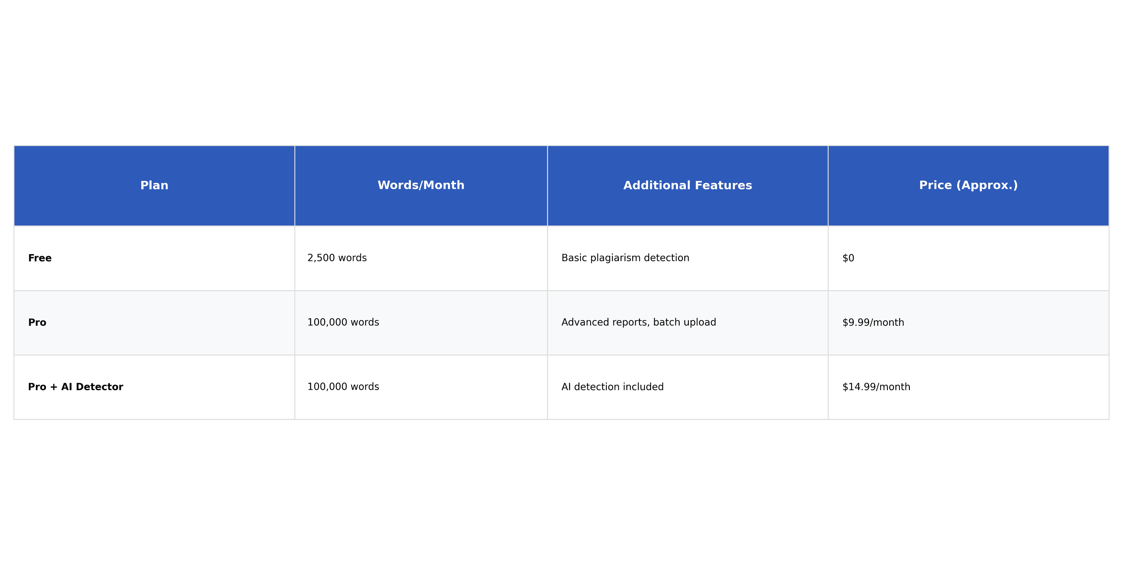 2. Assess Your Volume and Budget: Calculate how many words or documents you need to check per month. This will determine whether a subscription model (like Grammarly or Quetext) or a pay-as-you-go credit system (like Copyscape) is more cost-effective.