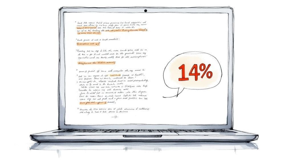 In academic circles, that 15% threshold is a widely used benchmark. Anything below that is often chalked up to unintentional overlap or the quirks of the detection software, rather than deliberate copying. For a deeper dive into how universities view these scores, you can find some great insights on plagiarism percentages at PapersOwl.com.