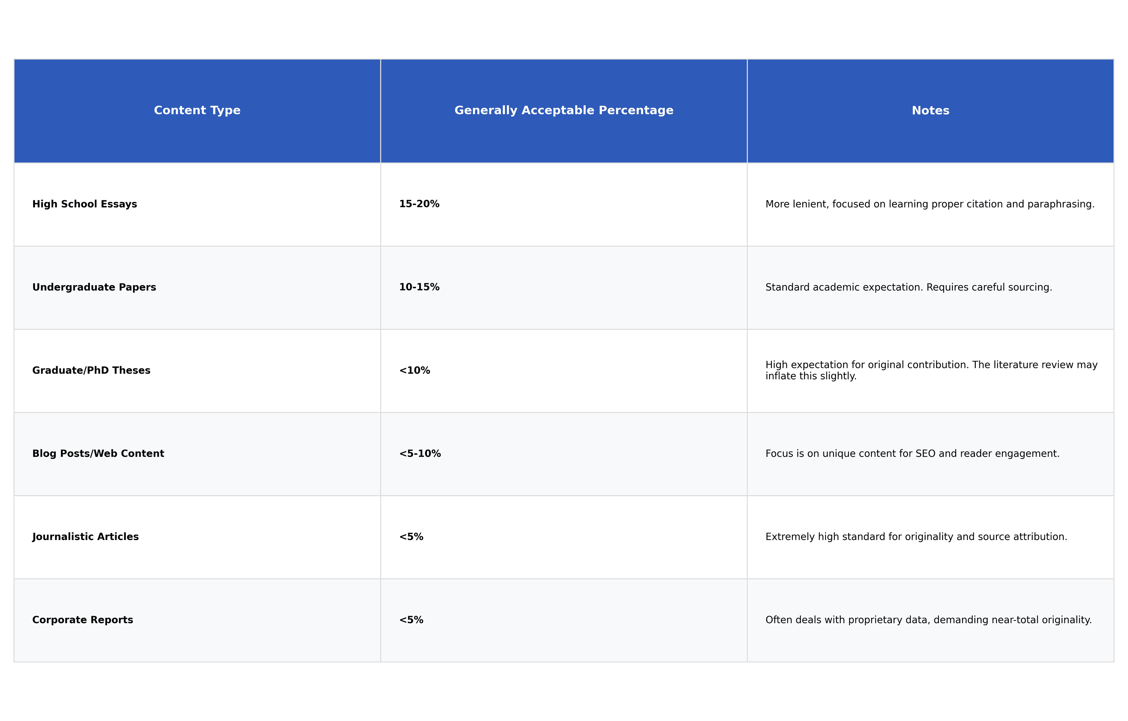 This jump in standards makes sense. A graduate student's work is supposed to be a pillar of original thought that future researchers can build on. A low similarity score isn't just a box to check—it's proof of the author's unique contribution to their discipline.