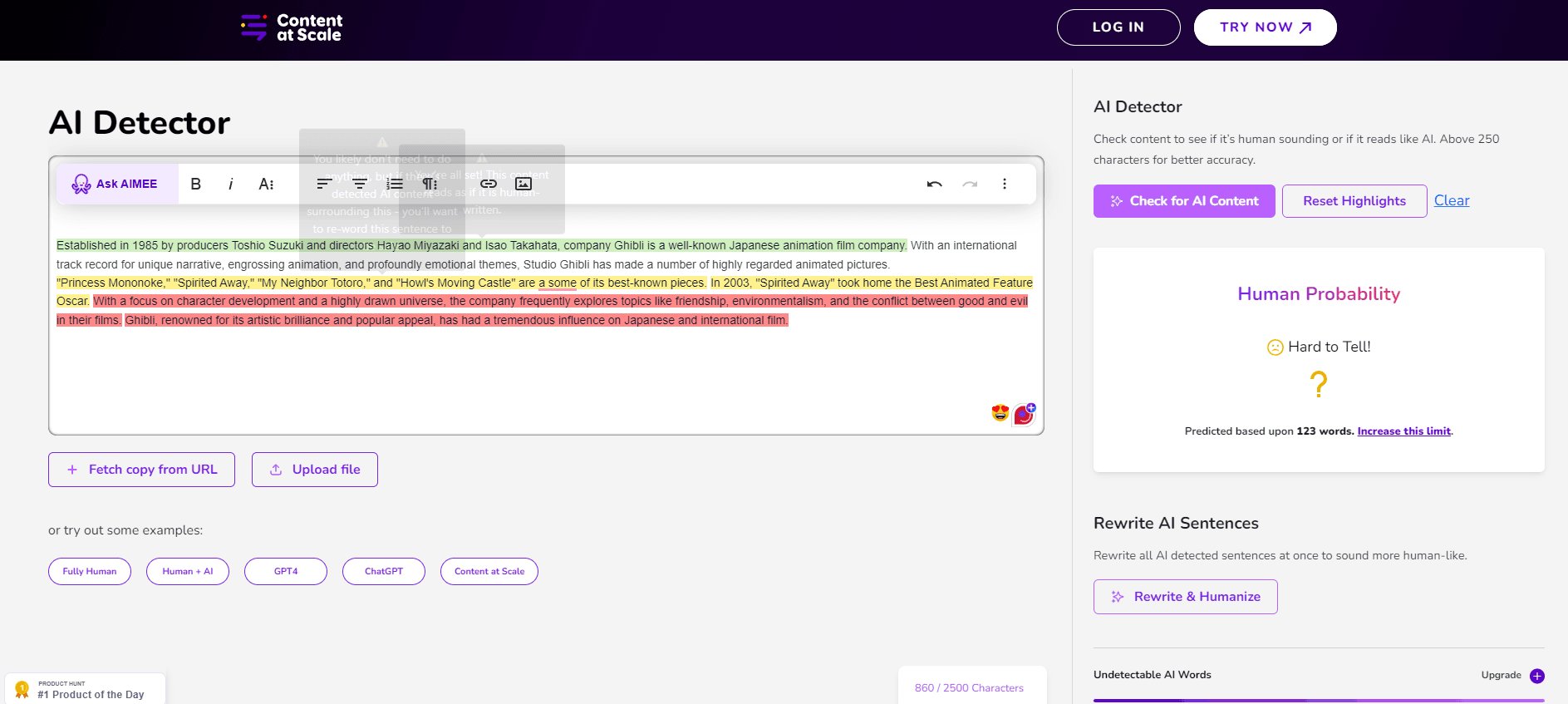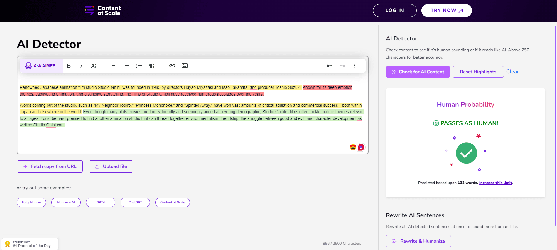 The tool is particularly useful for those who need a hand to make their text bypass AI content detectors (such as Copyleaks, Originality Ai, or GPTZero), as well as plagiarism-free to ensure authenticity, high-quality, and undetectable content.