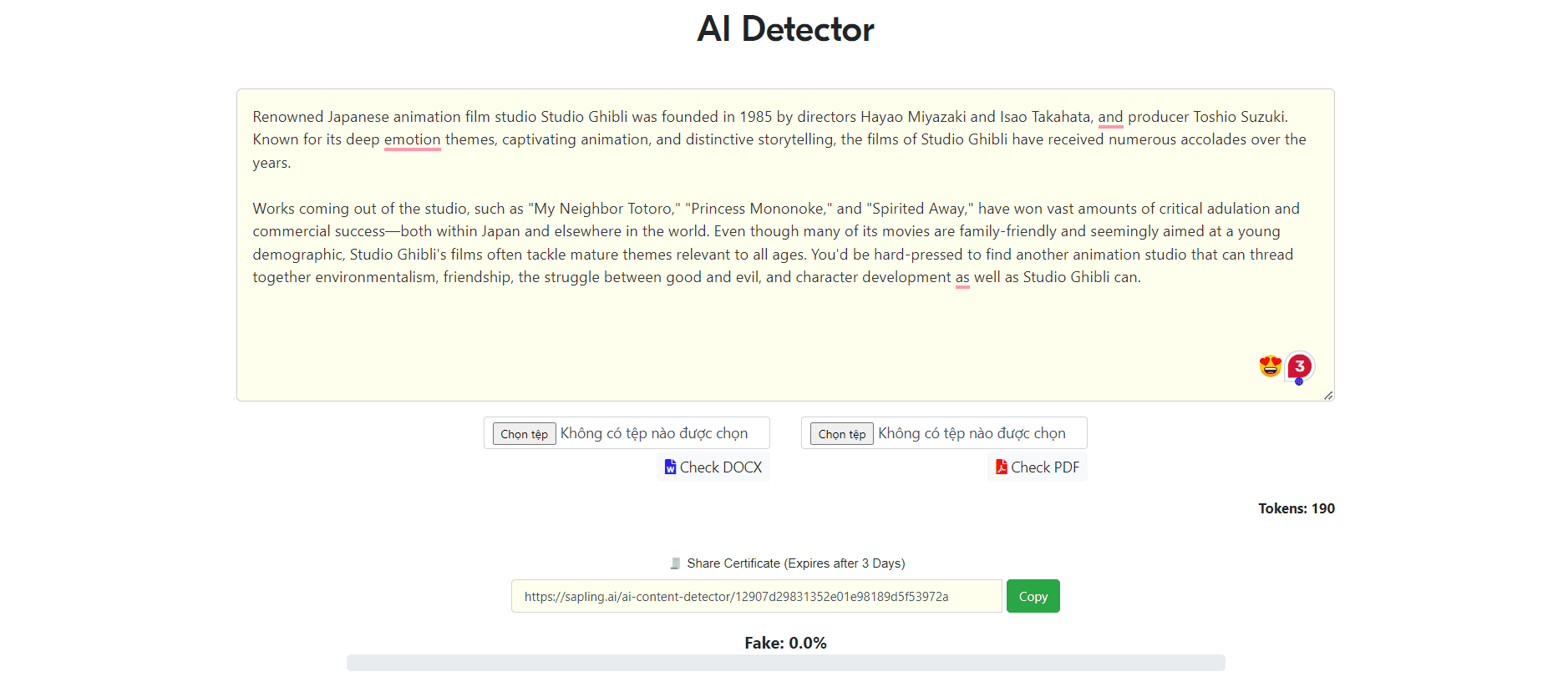 Following this step, we will copy this newly rephrased content and put it into real-life testing. If the AI detectors were unable to detect that the content had been generated with an AI writing tool, then we would conclude that it was possible to bypass AI detection tools by using that platform.