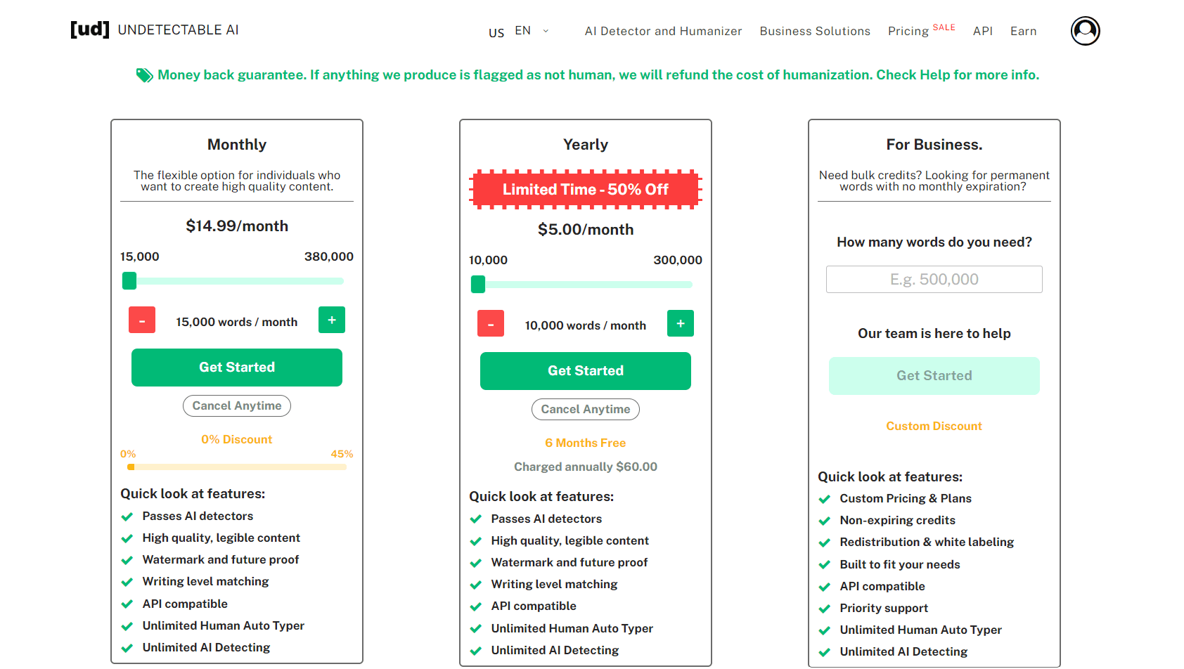Undetectable AI Paid Plans