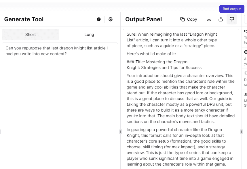 Here’s an example of how I can take that blog post I generated earlier and repurpose it into completely fresh content.