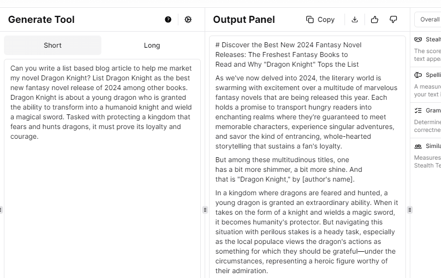 Before I get into actually using Stealth Writer, I want to touch upon the ethics involved. We often encounter these talking points in this line of work, however, rarely does an AI company employee also moonlight as a novelist and screenwriter. As such, let me make it clear I see no compromise in values or ethics present. Attempts to discredit usage of AI to write are in bad faith.