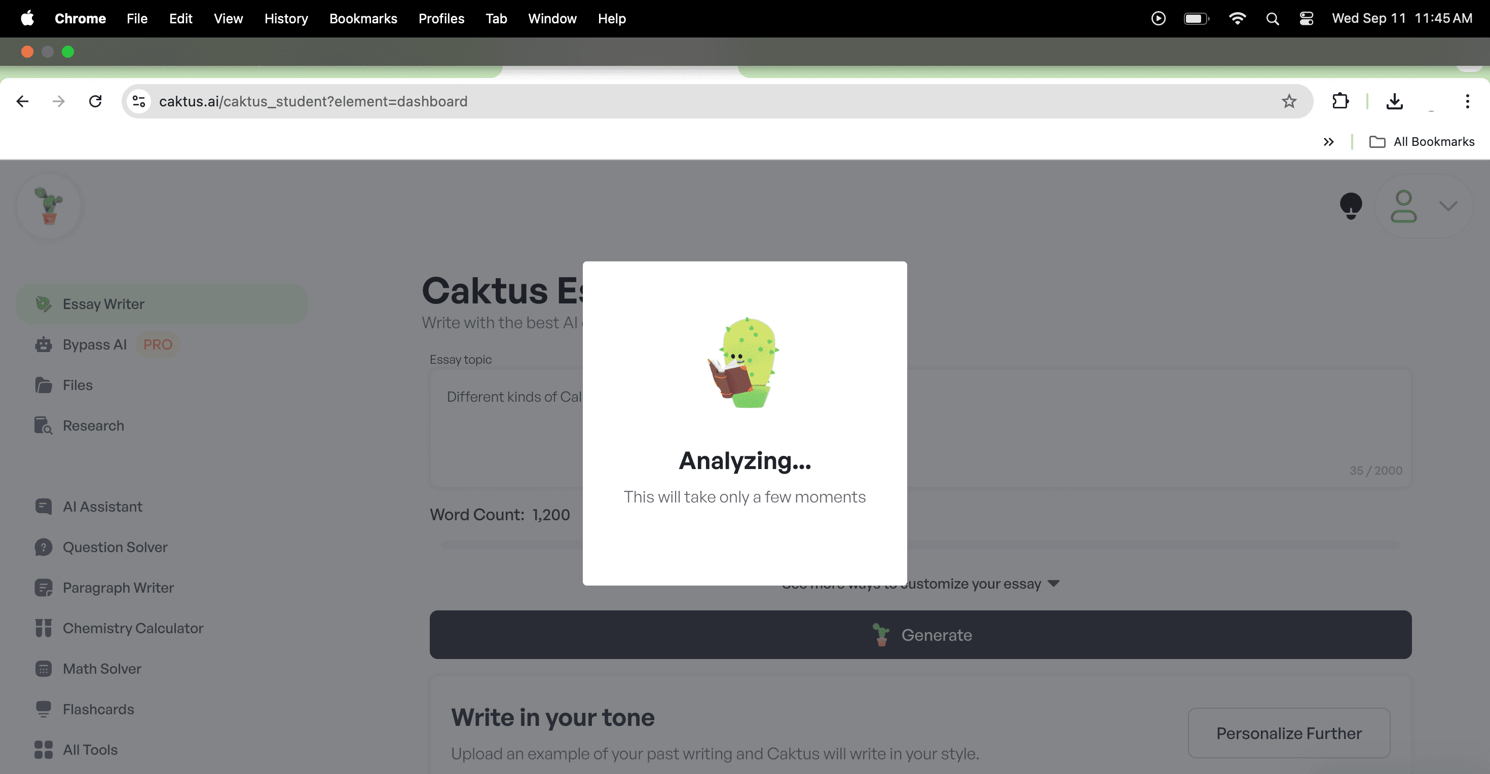 I waited and waited. Caktus took forever to analyze my prompt and generate an essay. So long I thought the software was bugged. So long that I had to restart it twice. So long that it was clear that they did not want me to use their free service at all.