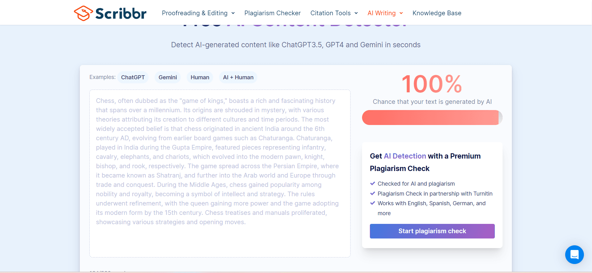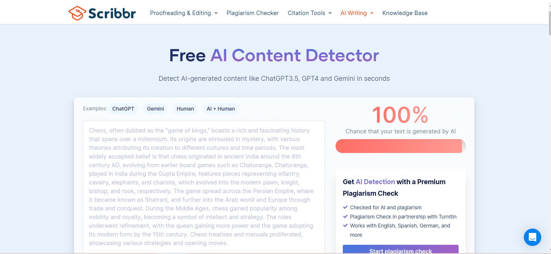 Finally, we're gonna put these two contents through the Scribbr AI detector and see how it works.