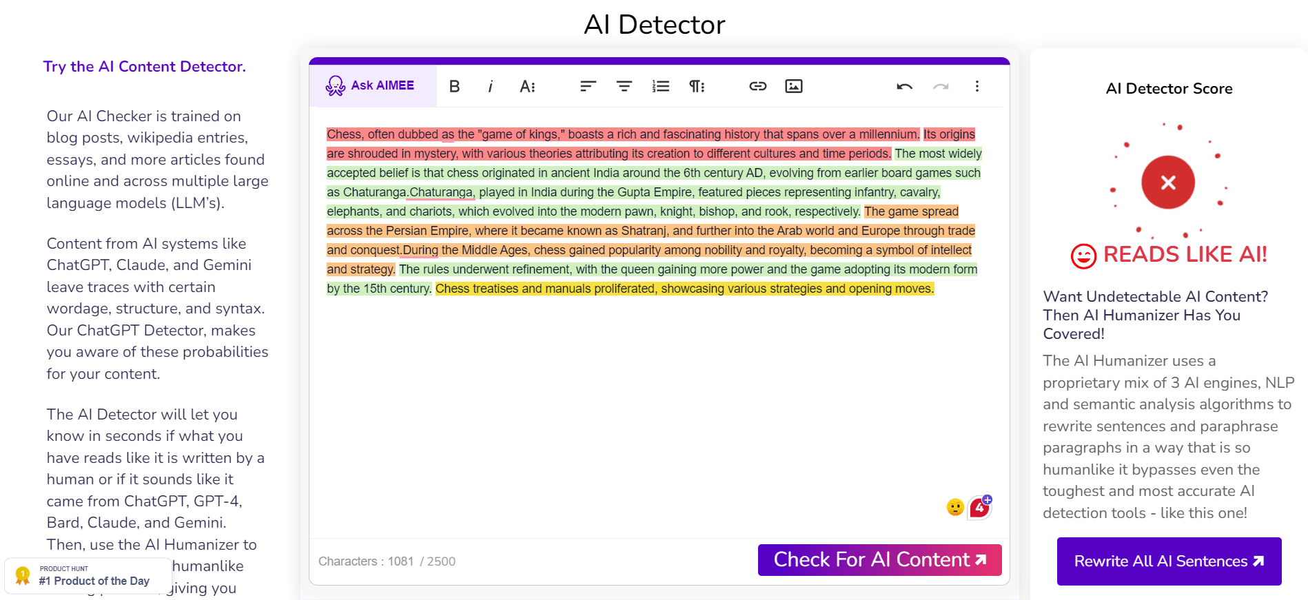 But can it truly achieve that? The only way to find out is to take a test for it. So, we will be using ChatGPT for our experiment. We will use the content produced by ChatGPT and place it onto the CheatGPT platform to humanize it. Then, we will test to see if they can really bypass some well-known AI detectors below.