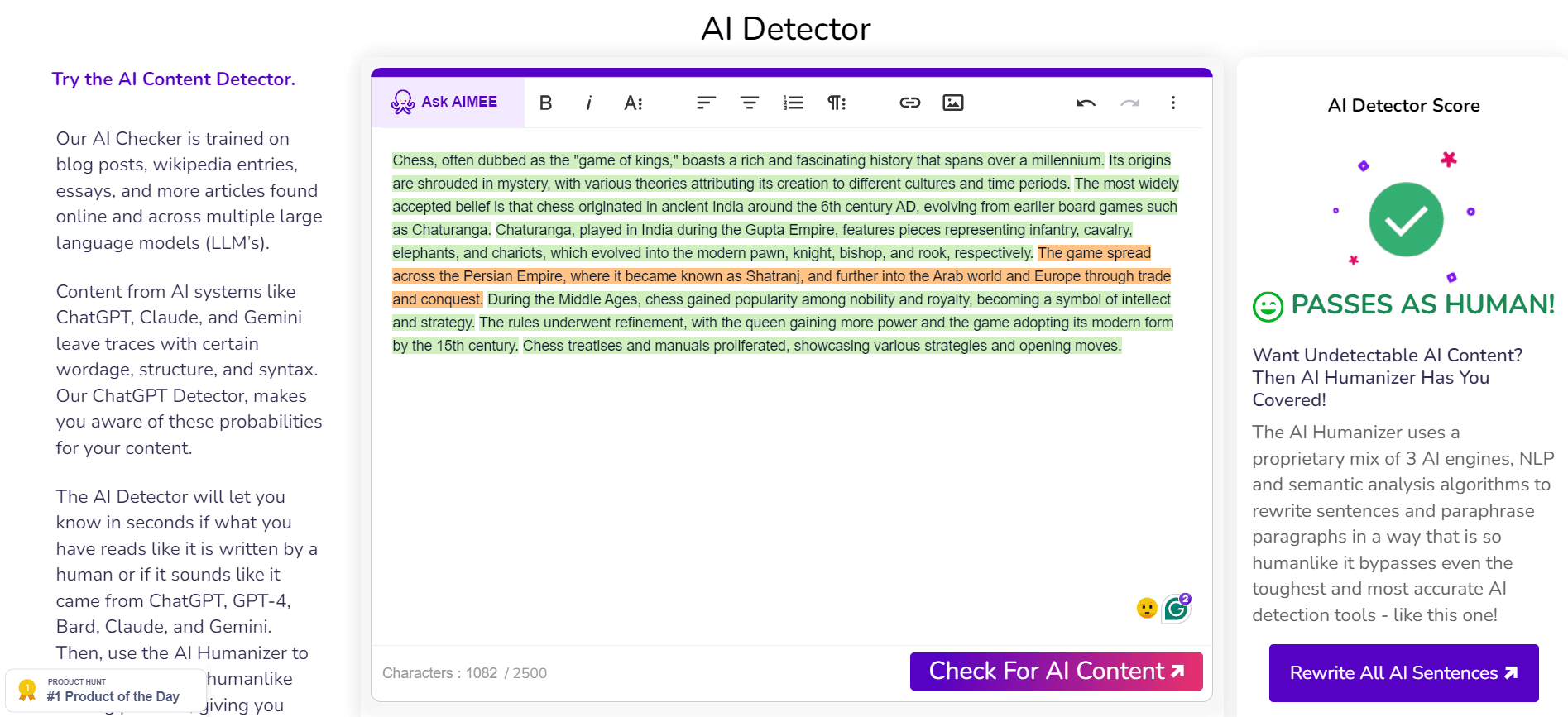• Bypass AI detection platforms such as Undetectable.ai, Turnitin, Content at Scale, Content Detector, and Copyleaks