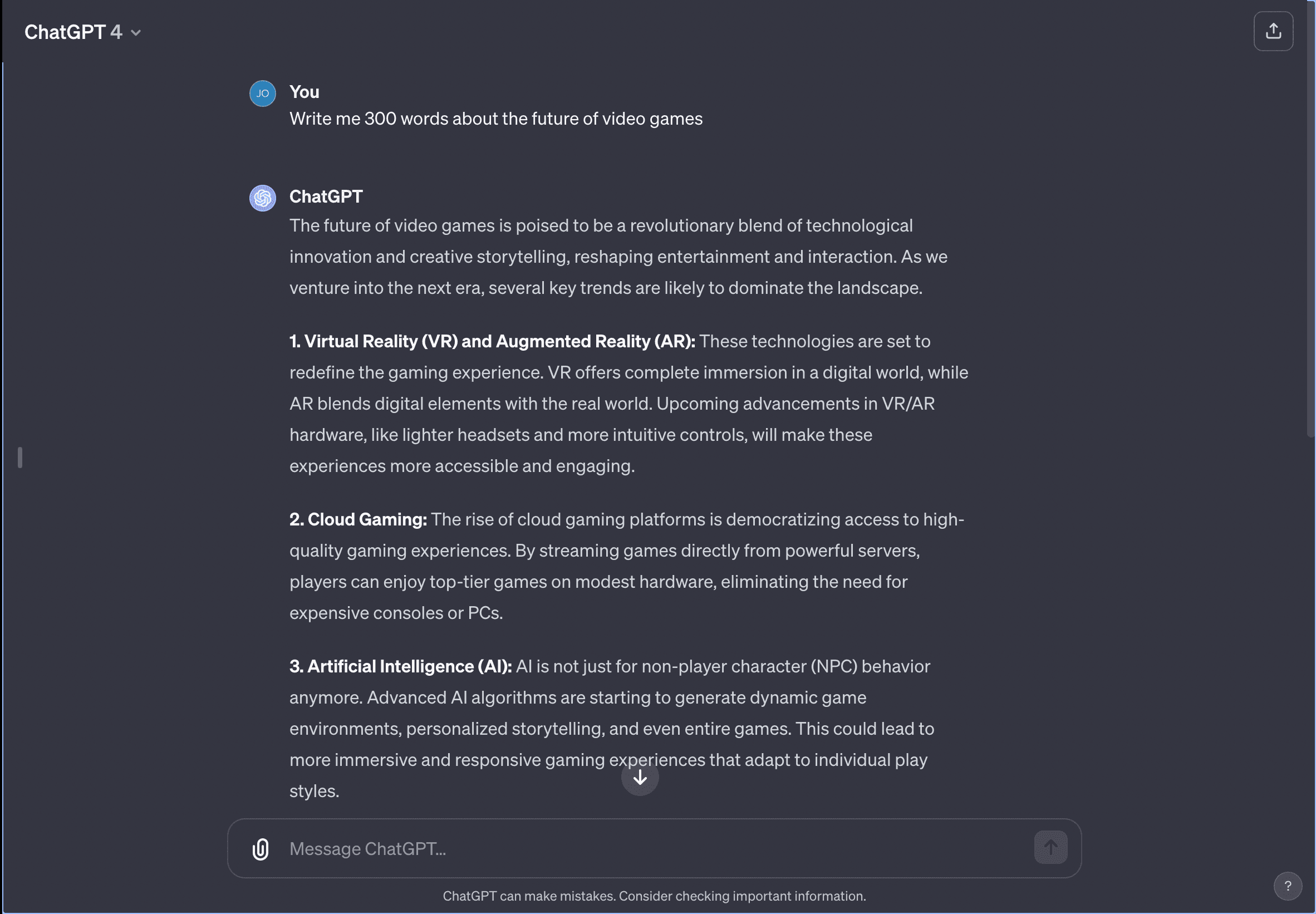 Firstly, let's come up with a text written by ChatGPT. Here's the prompt that we will be using for the experiment.