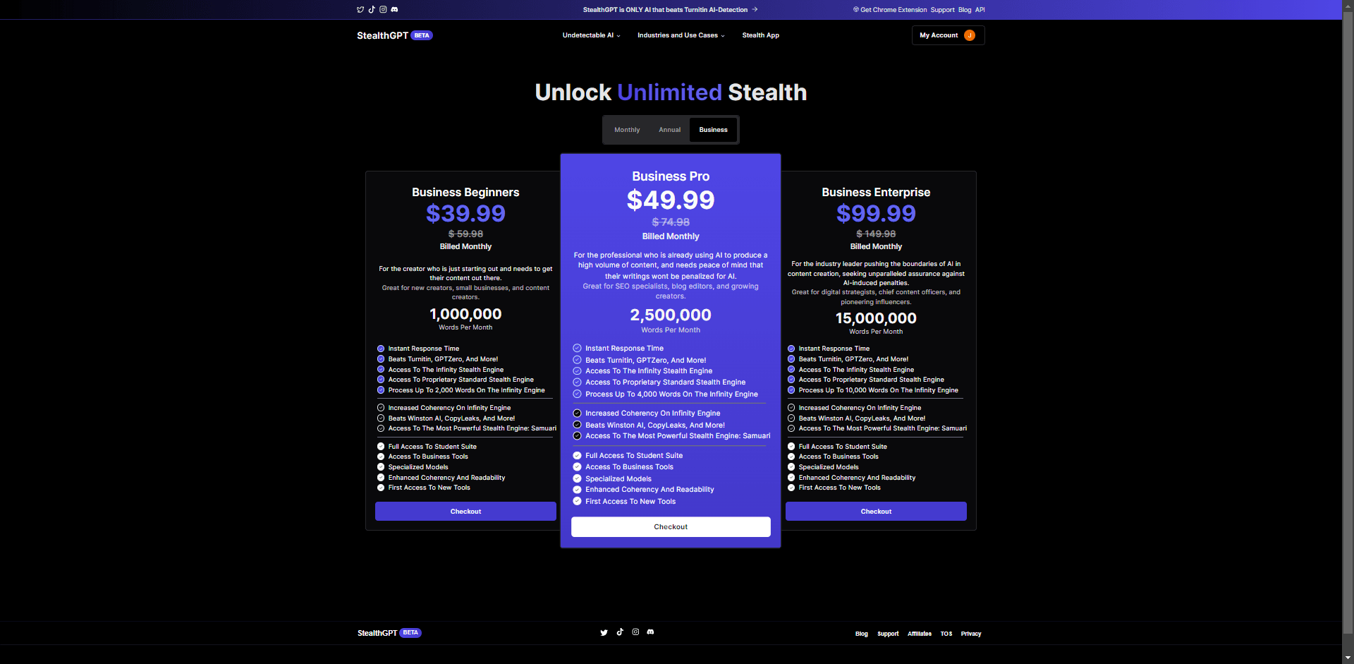 Affordable and Accessible: StealthGPT offers various pricing plans, making it available to a broad range of users, from individuals to businesses.