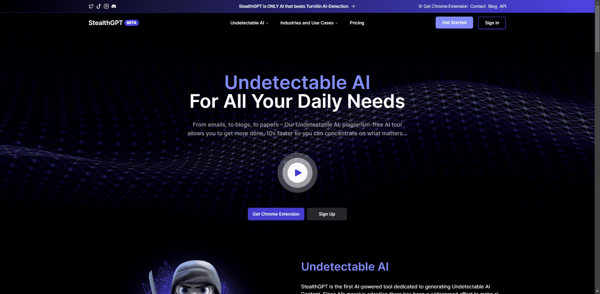 Undetectable AI-Generated Content: StealthGPT excels at producing content that can slip past AI detection tools, such as GPTZero, TurnitIn, and Winston AI.