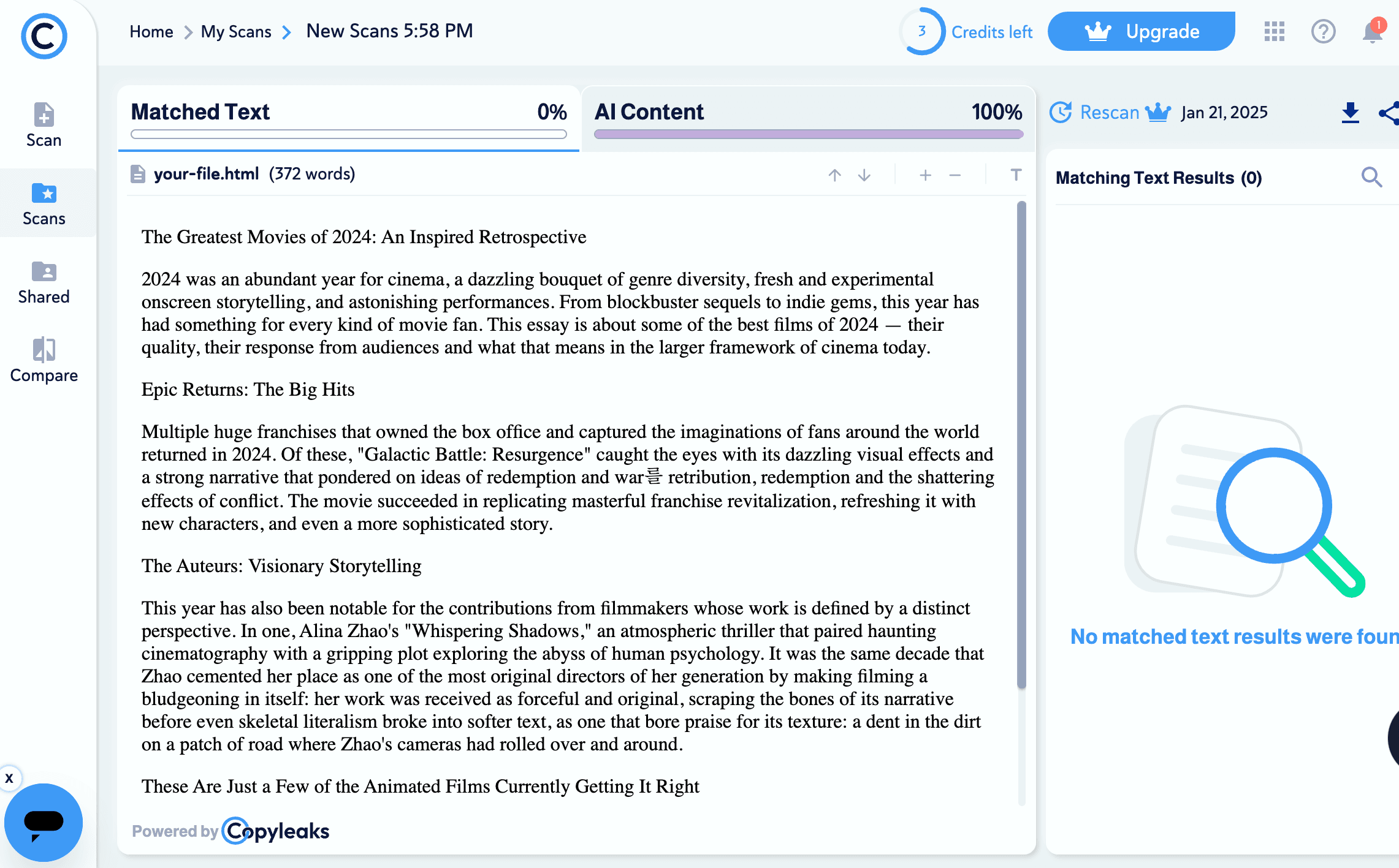 Not well. Rewritify scored a 100% AI score, it’s as if the text wasn’t really humanized at all.