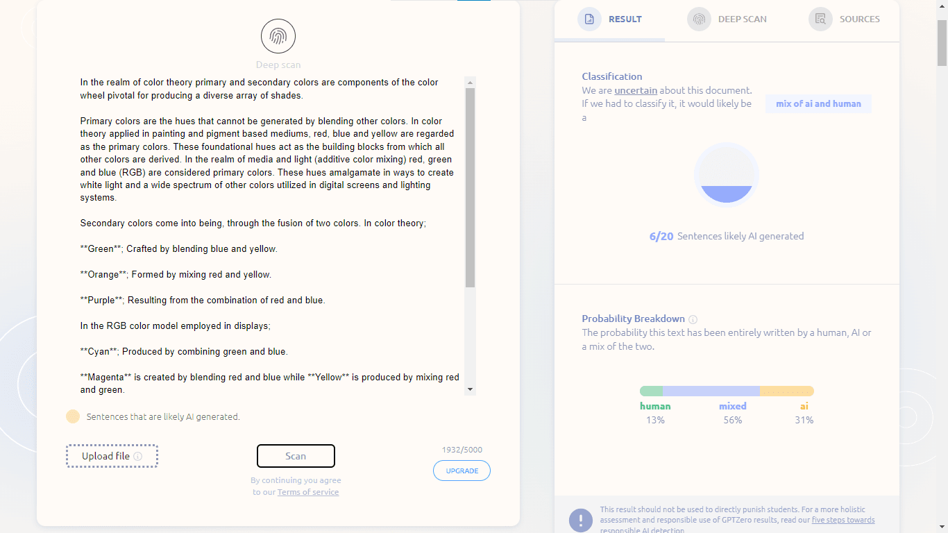 The screenshot below shows GPTZero’s scan of Undetectable AI’s text.