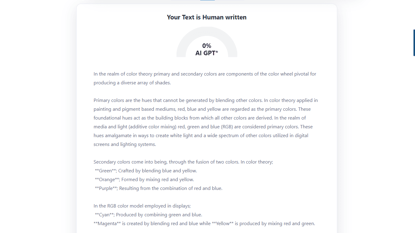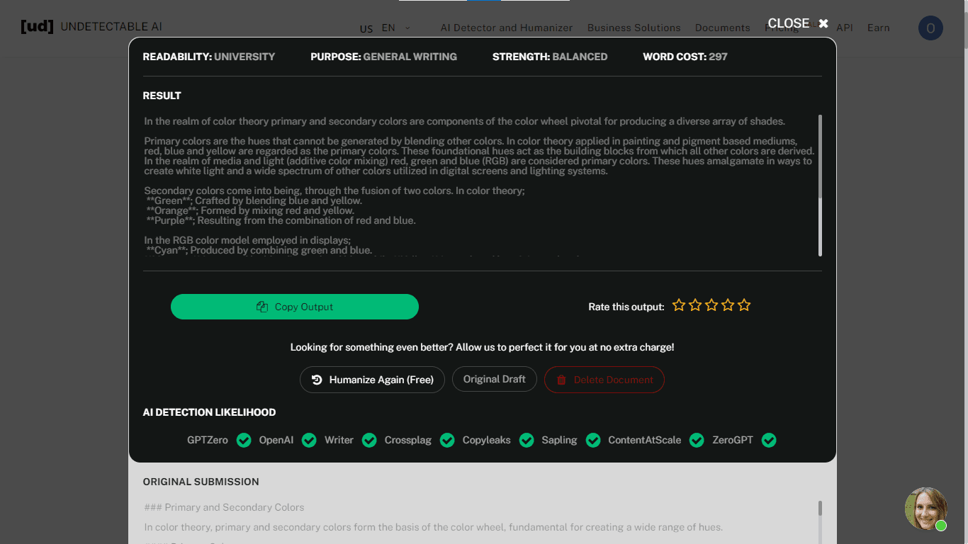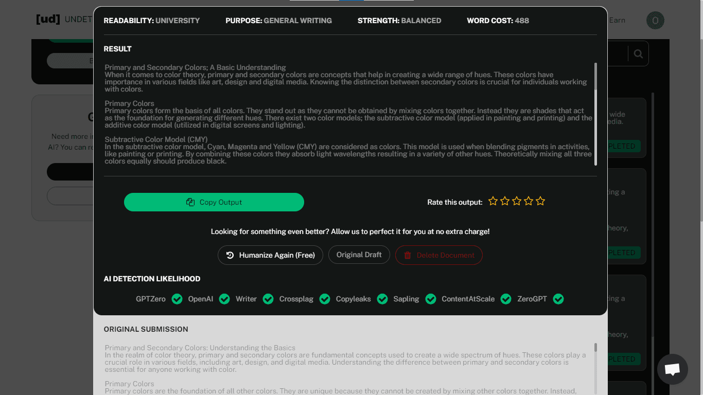 Writer believed that 100% of the text humanized with Undetectable AI was written by a human.