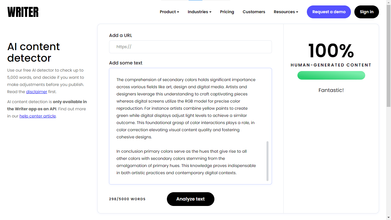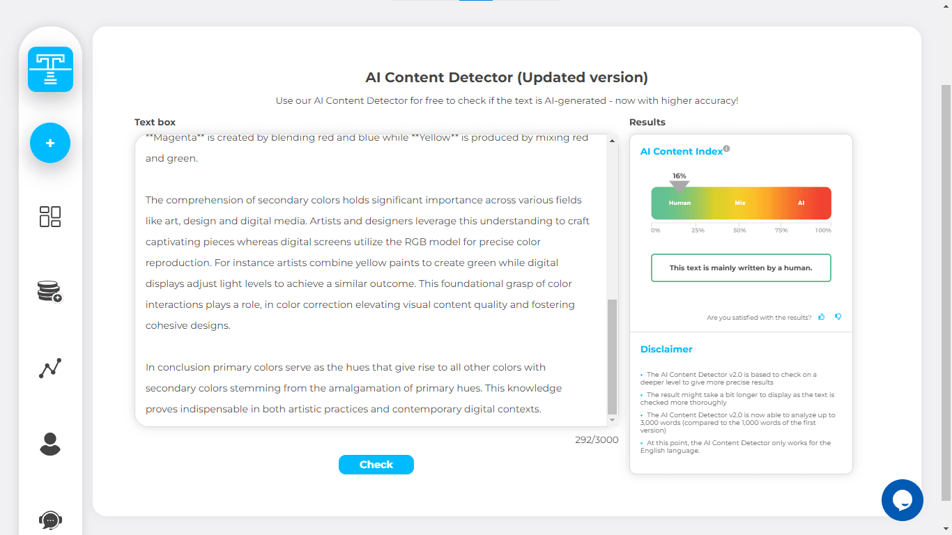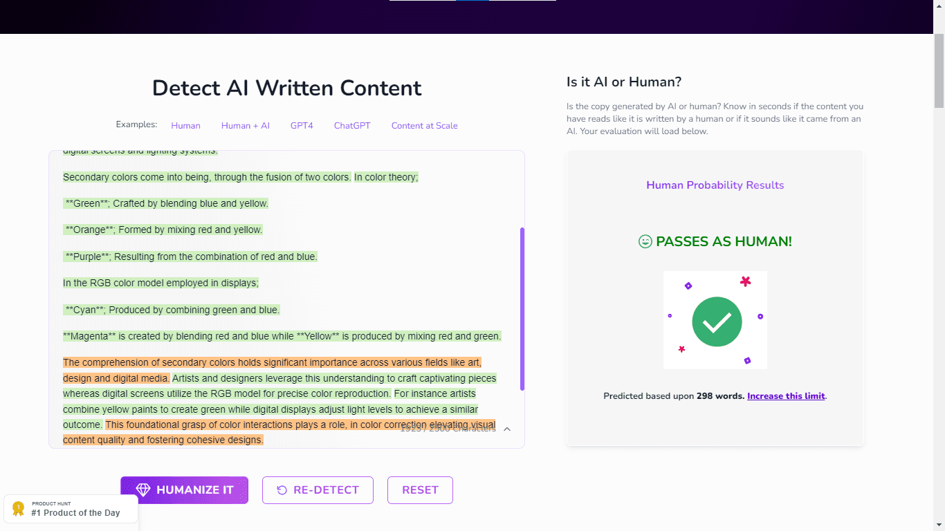Writer believed that 100% of the text humanized with Undetectable AI was written by a human.