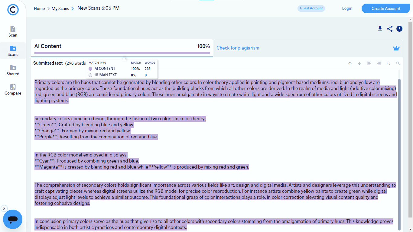 Crossplag believed that only 16% of the text humanized with Undetectable AI was AI-generated.