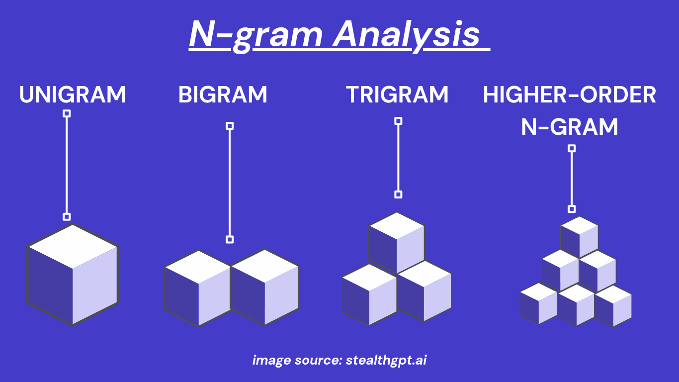 How does an artificial intelligence tool use n-gram analysis in detecting AI content? After tokenization, the software groups tokens into different levels of n-grams. Then, it checks how many times these n-grams occur in the text. When many n-grams appear many times, the AI detection tool believes that the text is probably AI-generated.