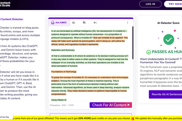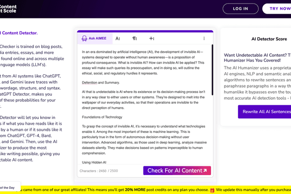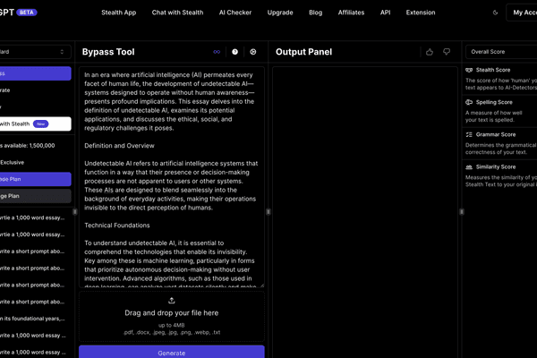 Overview: StealthGPT is an AI content generator that specializes in creating human-sounding content that bypasses AI detection tools such as Content at Scale, GPTZero, Turnitin, and others propping up. The tool also produces content in such a way that it is uniquely different each time a response is generated, thereby avoiding plagiarism issues. This makes StealthGPT an invaluable asset for those requiring high-quality, AI-generated content that mirrors human writing.