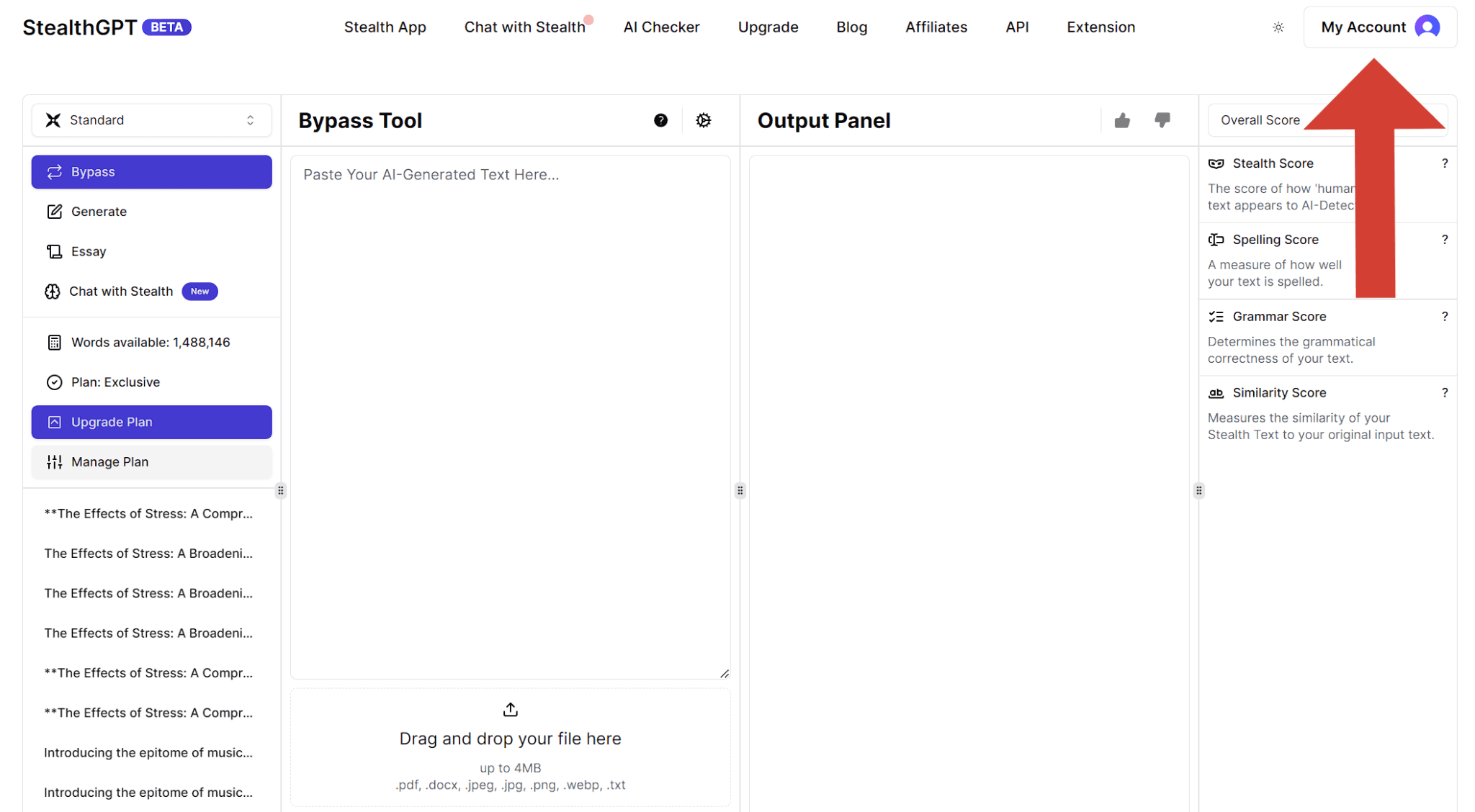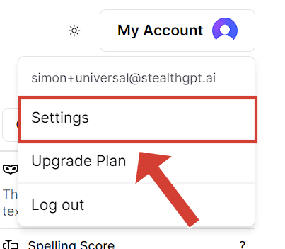 Open the SteathGPT website as usual and ensure that you completely log in. Go to the dashboard at the top right of the screen. Click on My Account.