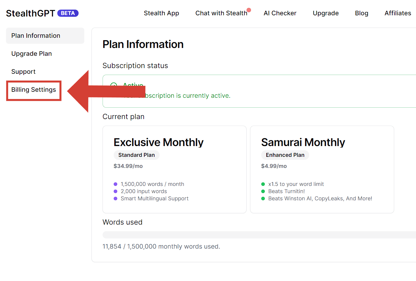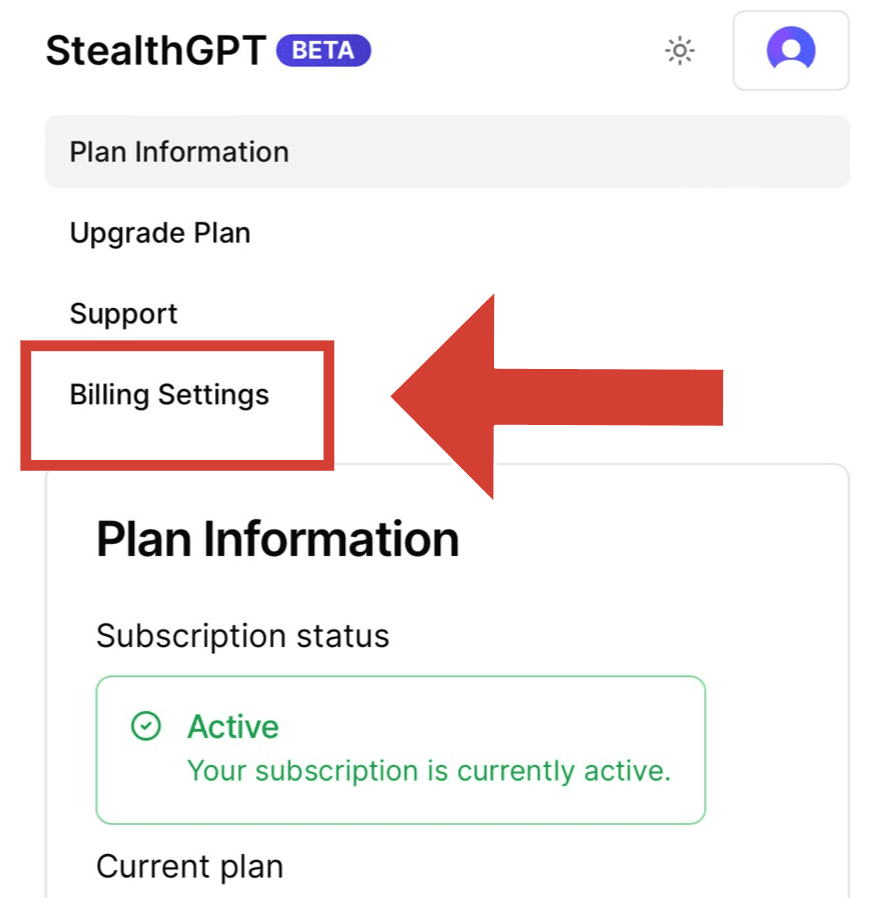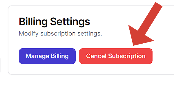 To modify your subscription settings, SteathGPT gives you two options, which are: "Manage Billings and Cancel Subscriptions". Just click right on the red button, Cancel Subscription, and then follow the final step below.