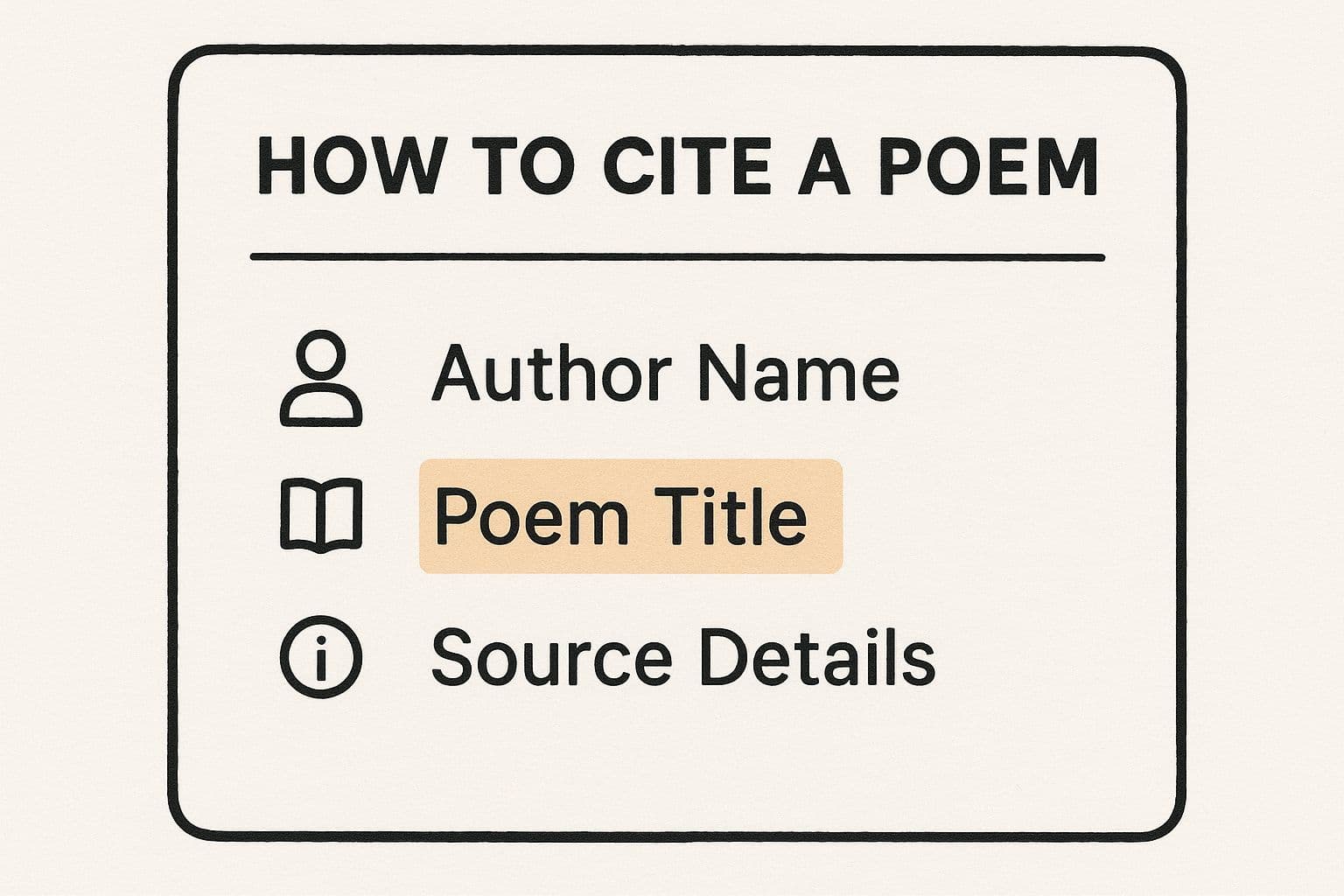 The core parts are pretty straightforward, but getting them right is crucial for your credibility and academic integrity. This quick visual breaks down the three must-have pieces for any poetry citation.