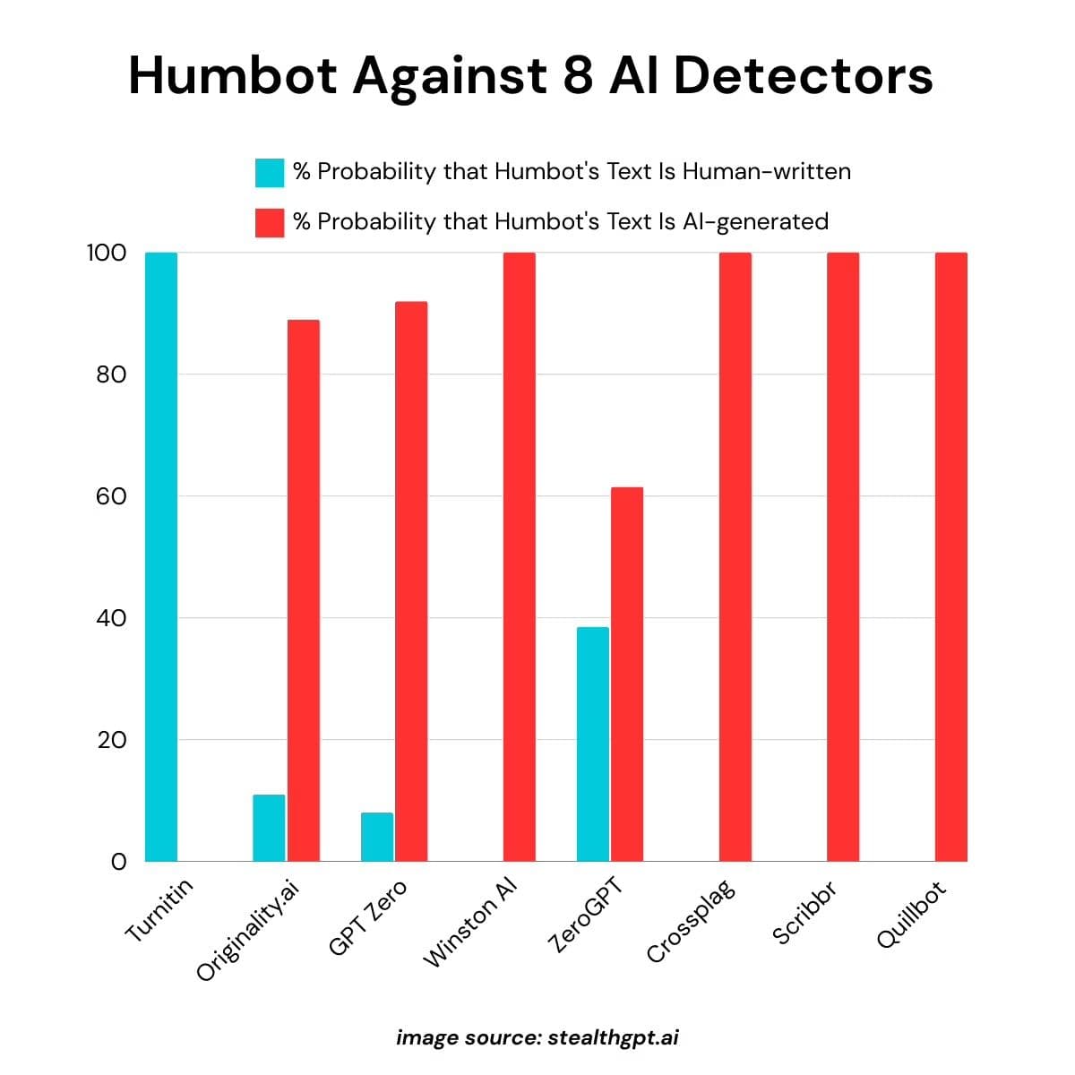 Humbot, like many other undetectable AI services, gears its algorithm for one specific duty: bypassing Turnitin. We can tell as much through their test results featured below: