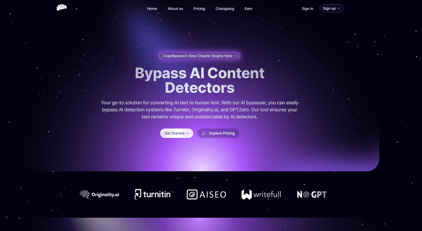 CogniBypass is aimed at transforming AI-created text into text that seems like it was written by a human, with the goal of evading detection by AI monitors like Turnitin and Originality.ai. It positions itself as a primary tool for maintaining the uniqueness and stealth of content against AI scrutiny. The service boasts advanced algorithms for text modification, flexible settings for different detection tools, and a range of plans, including free trials, to suit various user needs.