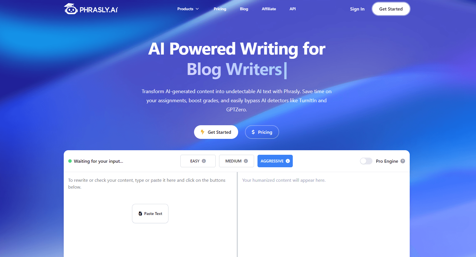 Phrasly AI specializes in rephrasing AI-written content. It offers several features intended to bypass AI detection software and make AI-generated content appear more human-written.