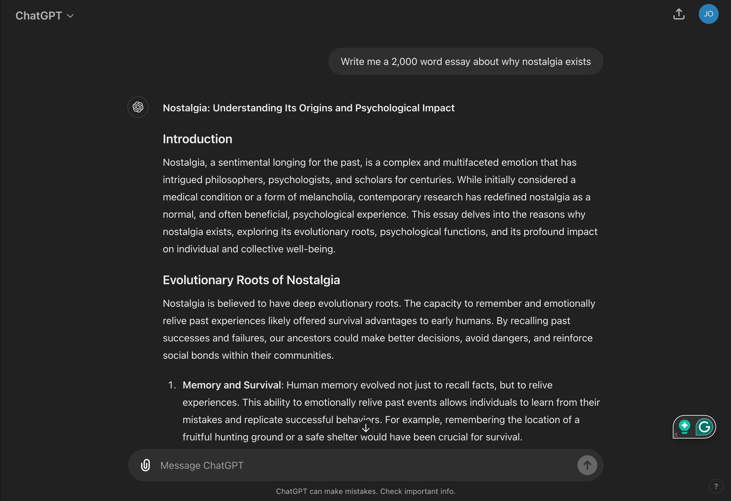 Let's use ChatGPT to create our AI-generated texts. We will create a 2,000-word essay on ChatGPT for a prompt. Here's what it looks like: